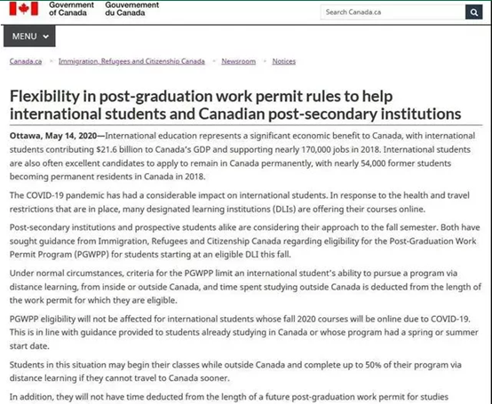 不仅如此,加拿大CIC官网又在近日发出消息,申请学习许可以及毕业后工签更加灵活,如因疫情期间无法提供完整材料也不影响审理。
