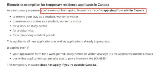 针对加拿大境内移民申请人生物指纹信息采集无限期延长
