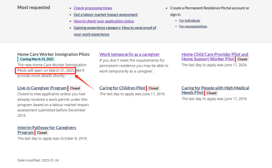 加拿大新的护工项目Home Care Worker Immigration Pilots 将于2025年3月31日开放。届时,满足条件的申请人就可以直接递交PR申请了!